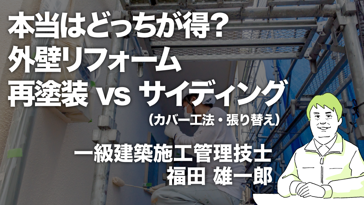 外壁メンテは「再塗装で延命するか」「サイディングで刷新するか」が大きな分かれ道。この記事は、はじめての方でも判断できるように、費用・寿命・工期・暮らしやすさを整理して比較、ポイントを詳しく解説します。